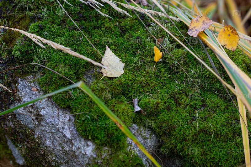 Ствол дерева, поросший с северной стороны мышевидной зеленью, на заднем плане