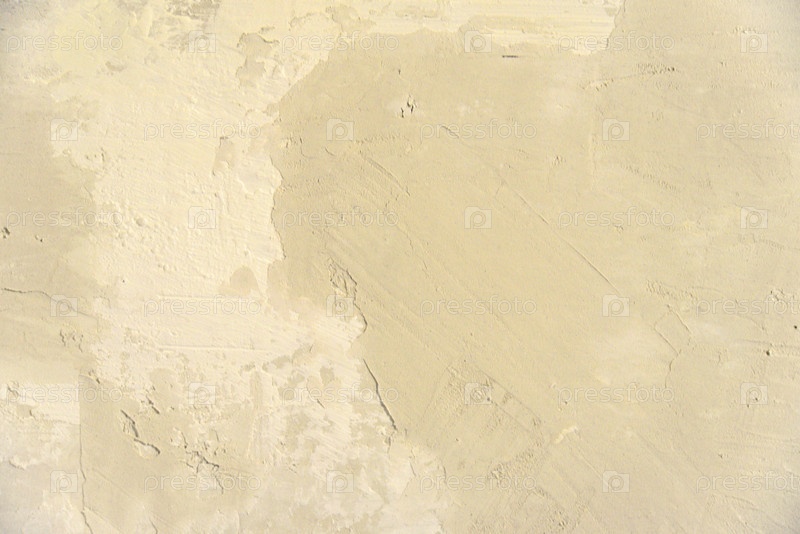 Серая стена в доме оштукатурена свежей цементной смесью. Работы по ремонту стены в доме строительной смесью