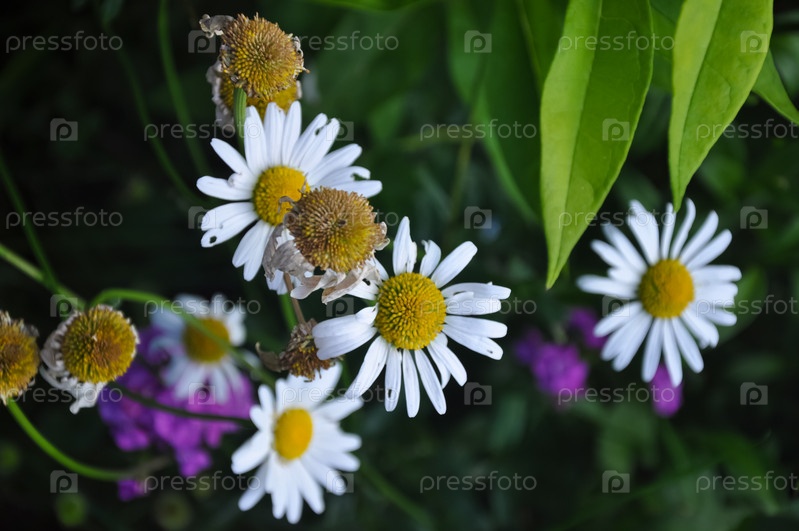 Цветы ромашки крупным планом. Цветы в зеленом саду