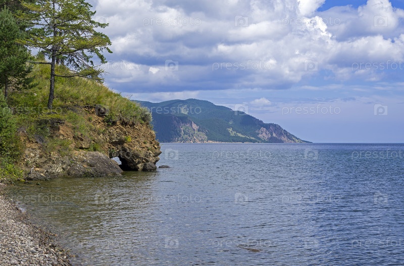 Маленький сквозной грот в прибрежном мысу. Берег озера Байкал. Иркутская область, Россия. Август