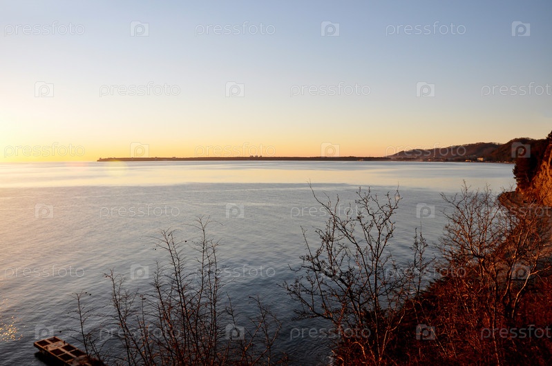 Закат в море. Морской берег вечером. Черное море. Абхазия