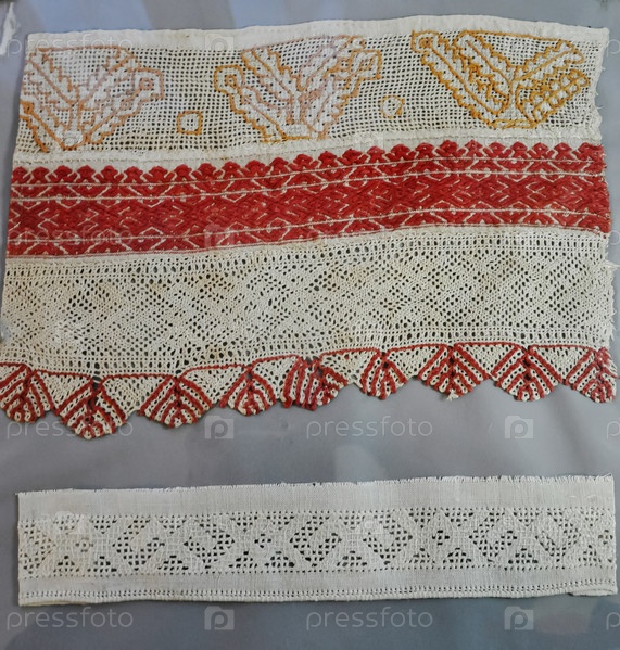 Старинные ткани и полотенца с русской вышивкой. Тверь, Россия