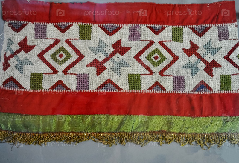 Старинные ткани и полотенца с русской вышивкой. Тверь, Россия