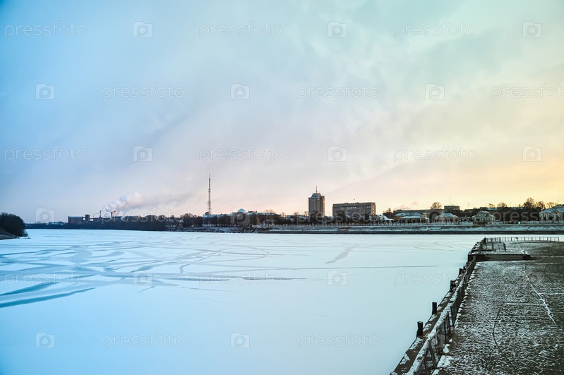 Тверская область. Набережная реки Волги. Замерзшая река. Тверь зимой. Россия