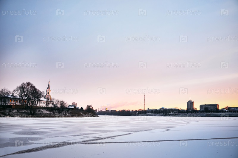 Екатерининский монастырь зимой. Набережная реки Волги. Тверь зимой. Россия