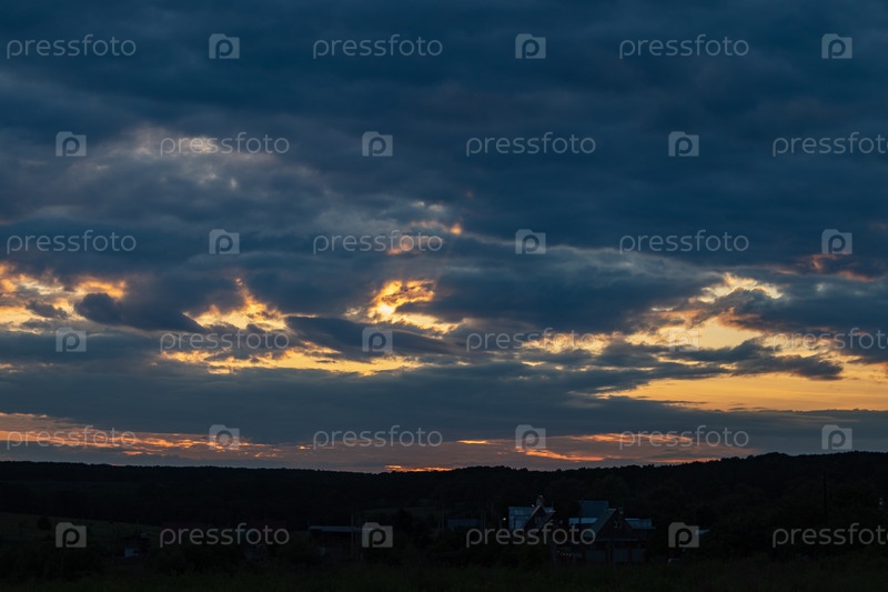 Пейзаж с закатом. Прекрасный вид на яркое красочное небо на закате летним вечером. как фон