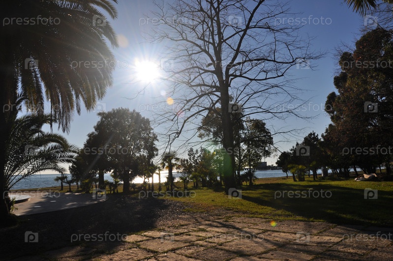 Город Сухуми. Берег моря и парк. Черное море. Абхазия