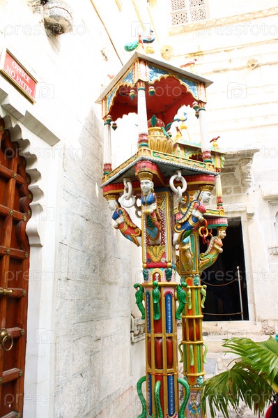 Цветная индуистская статуя в храме. Индия