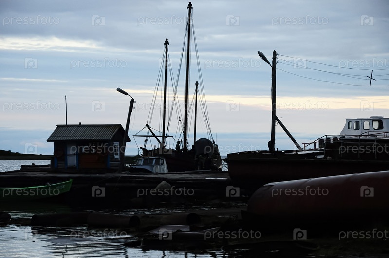 Корабль на закате. Вечер. Соловецкие острова. Белое море. Россия