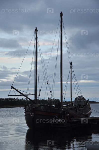 Корабль на закате. Вечер. Соловецкие острова. Белое море. Россия