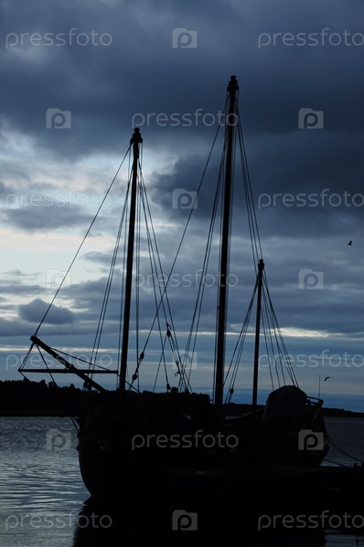 Корабль на закате. Вечер. Соловецкие острова. Белое море. Россия