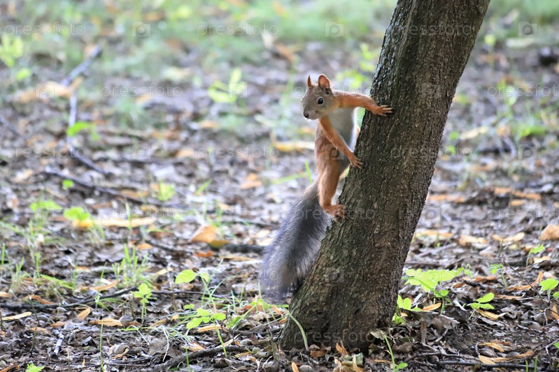 Белка в парке угощается от посетителей