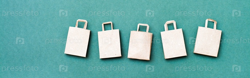Экологически чистые бумажные сумки для покупок подряд на зеленом фоне. Черная пятница распродажа подарков. Веб-баннер