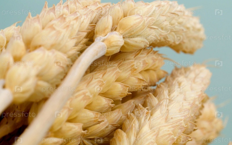 Макросъемка сухих колосьев пшеницы. Крупы экстремально крупным планом