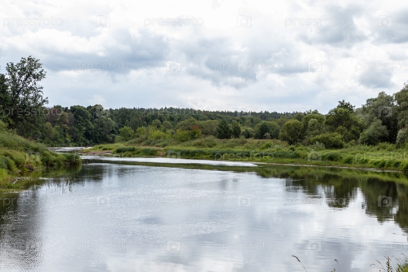 Летний пейзаж на берегу реки, пасмурный день. Калужская область, Россия