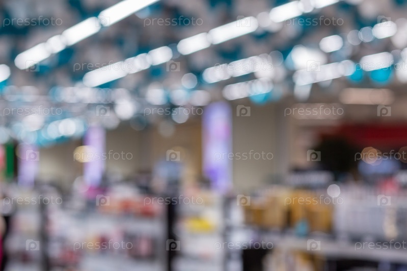 Размытое изображение салонов красоты с разнообразной престижной и массовой косметикой, косметикой, парфюмерией, средствами по уходу за кожей, ваннами и телом, средствами по уходу за волосами и салоном, продуктами для ногтей, инструментами и кистями, выста