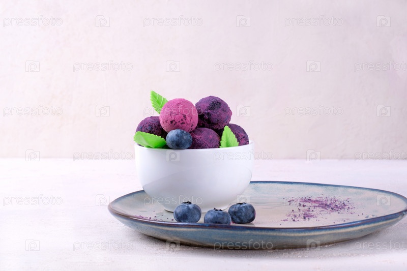 Шоколадные трюфели с пудрой из лиофилизированных ягод в чашке. Розовые и фиолетовые конфеты. Копировать пространство