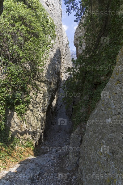 Крым, Караул-Оба, Адамово ложе (небольшое узкое ущелье в прибрежных скалах)