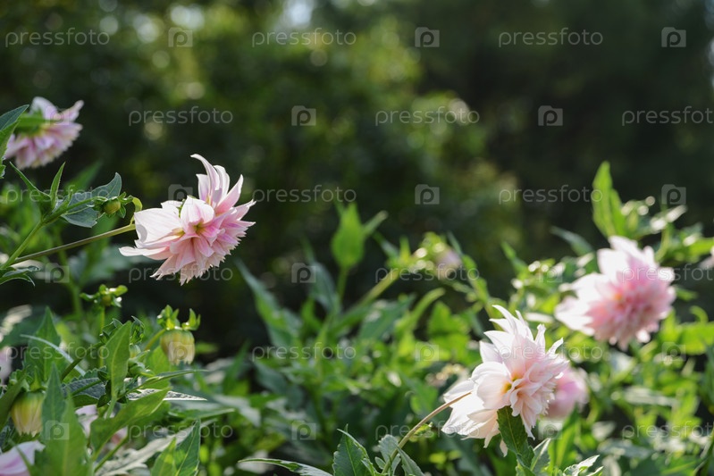 Розовые георгины в саду летом