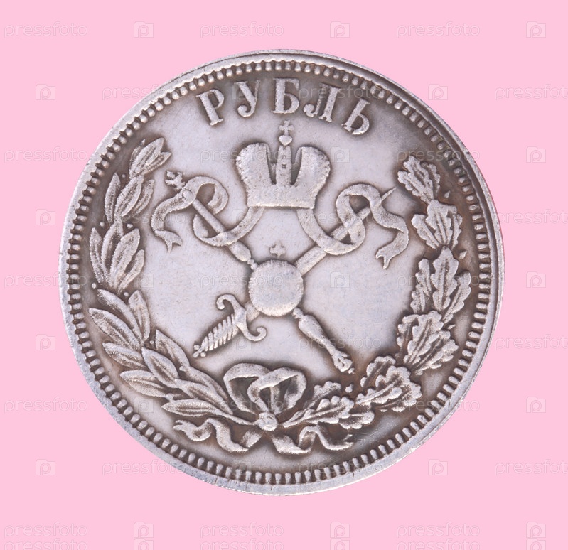Рублевая монета на розовом фоне