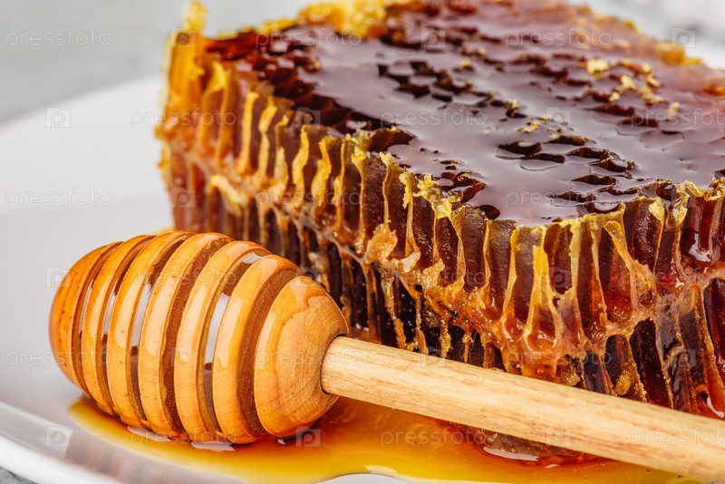Соты на тарелке с медовым ковшом
