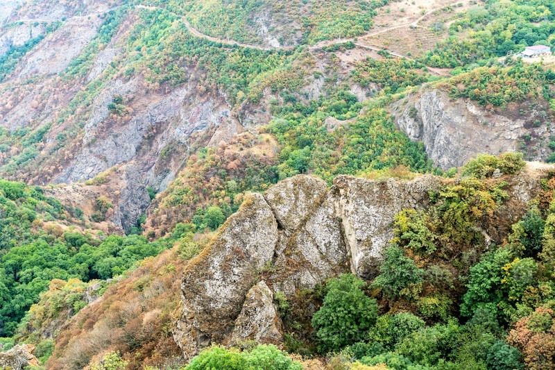 Осенний армянский горный пейзаж в пасмурный туманный день