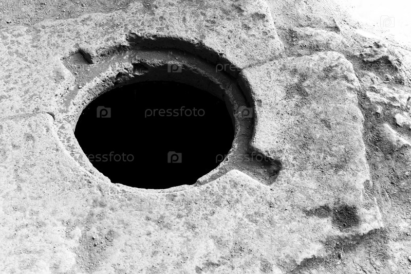 Отверстие в каменном полу средневекового монастыря как структурный фон