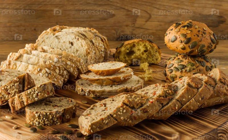 Ассортимент домашнего безглютенового веганского хлеба на деревенском деревянном столе. Домашняя выпечка