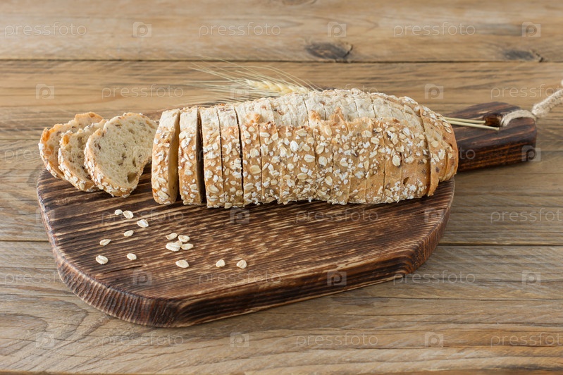 Веганский хлеб без глютена и без продуктов животного происхождения. Вегетарианский хлеб с овсянкой, банановым вкусом, на деревянном деревенском столе, нарезанный и готовый к подаче