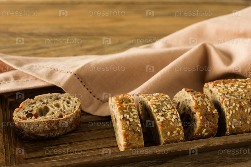 Веганский хлеб без глютена и без продуктов животного происхождения. Вегетарианский хлеб с овсянкой, банановым вкусом, на деревянном деревенском столе, нарезанный и готовый к подаче