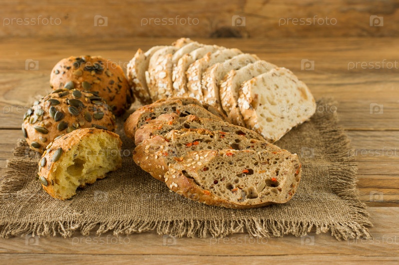Ассортимент домашнего безглютенового веганского хлеба на деревенском деревянном столе. Домашняя выпечка