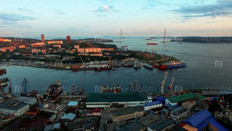 Городской пейзаж с видом на рыбацкий порт Диомеда