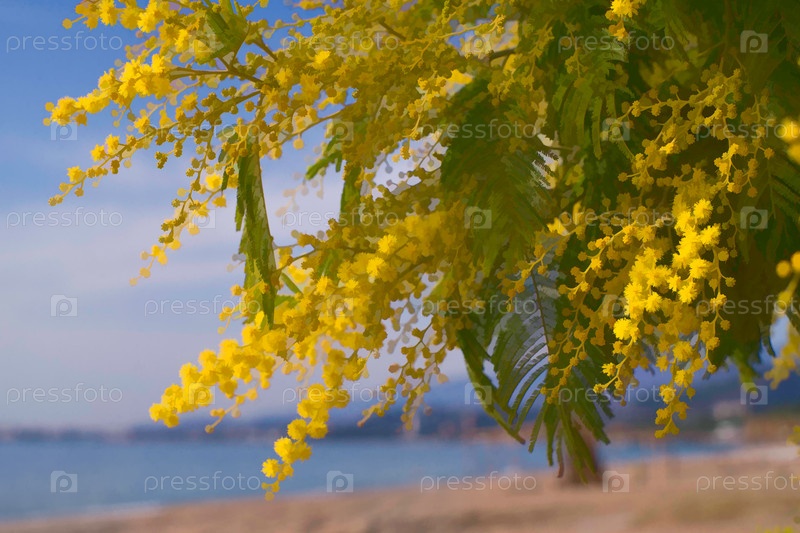 Пышные и яркие ветки серебристой акации