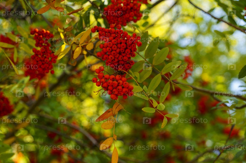 Естественный фон с ветвями красной рябины