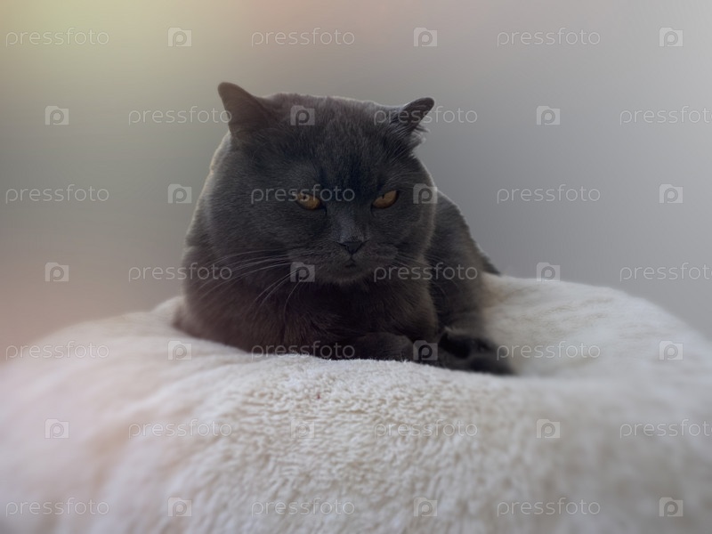 Портрет серого шотландского кота на размытом фоне