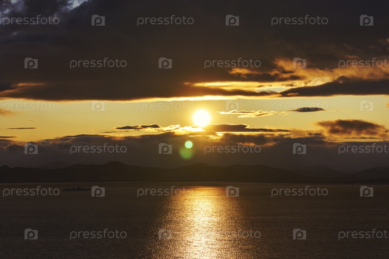 Морской пейзаж с красивым закатом над Авачинской бухтой на Камчатке