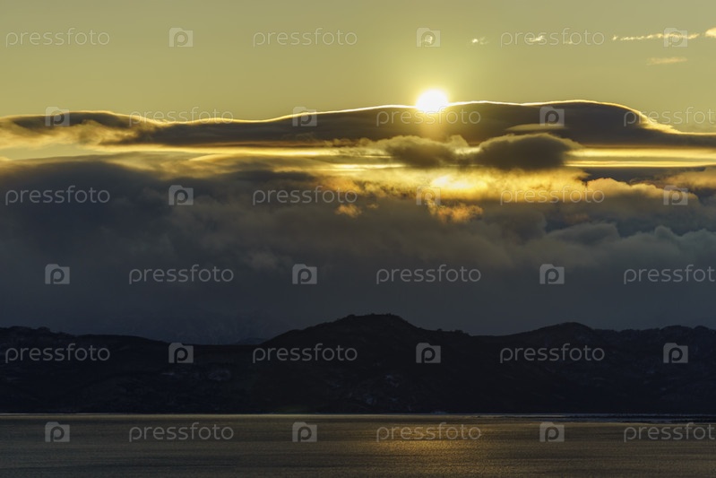 Морской пейзаж с красивым закатом над Авачинской бухтой на Камчатке