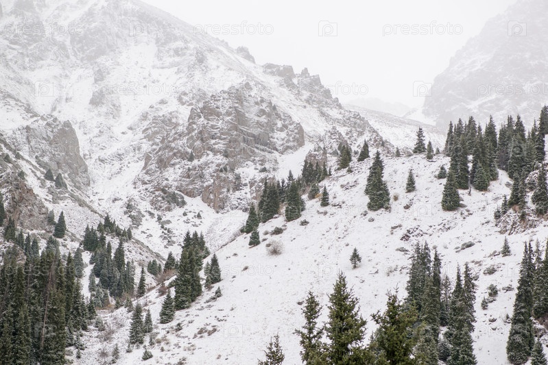 Снежные горы с деревьями