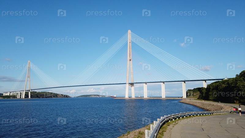 Морской пейзаж с видом на Русский мост. Владивосток, Приморский край