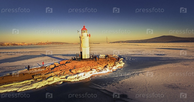 Морской маяк на косе Токаревская Кошка, зимой