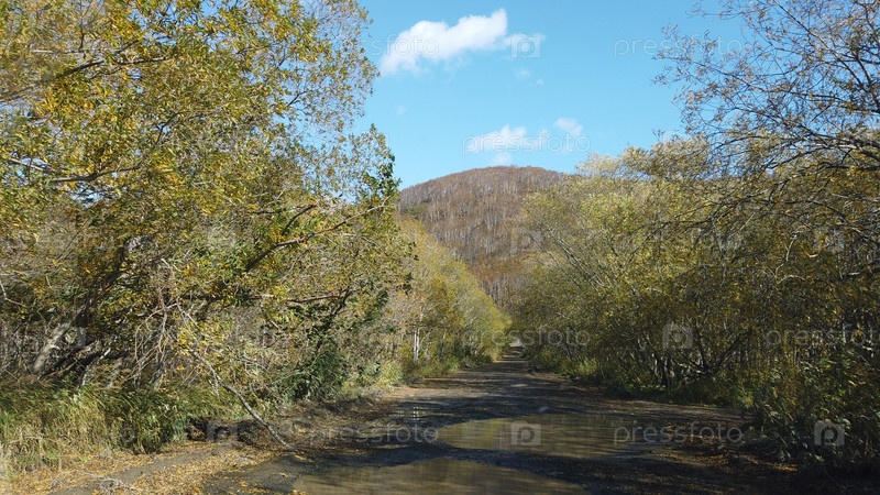 Пейзаж с видом на проселочную дорогу в Петропавловске-Камчатском, Россия