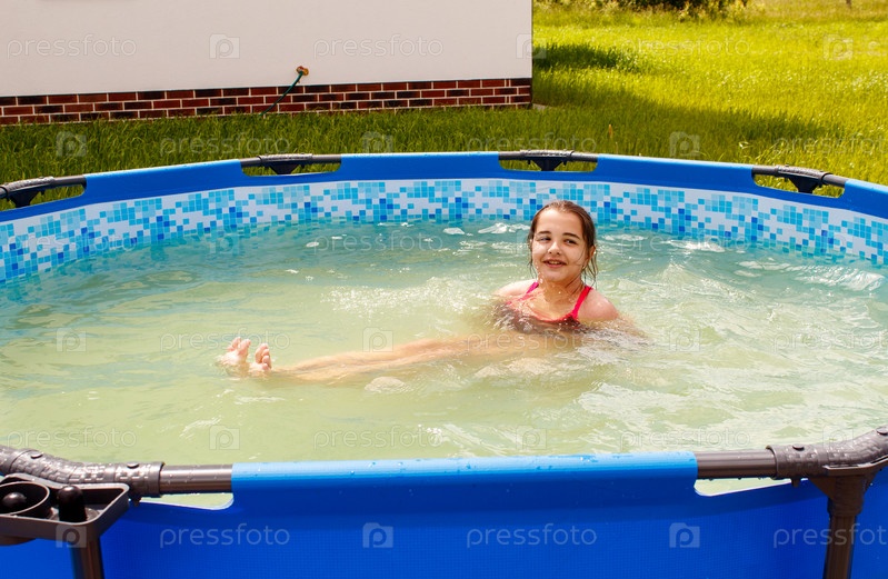 Девочка-подросток плавает в маленьком бассейне