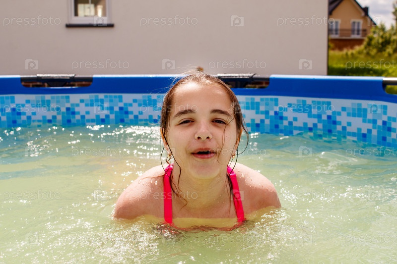 Девочка-подросток плавает в маленьком бассейне