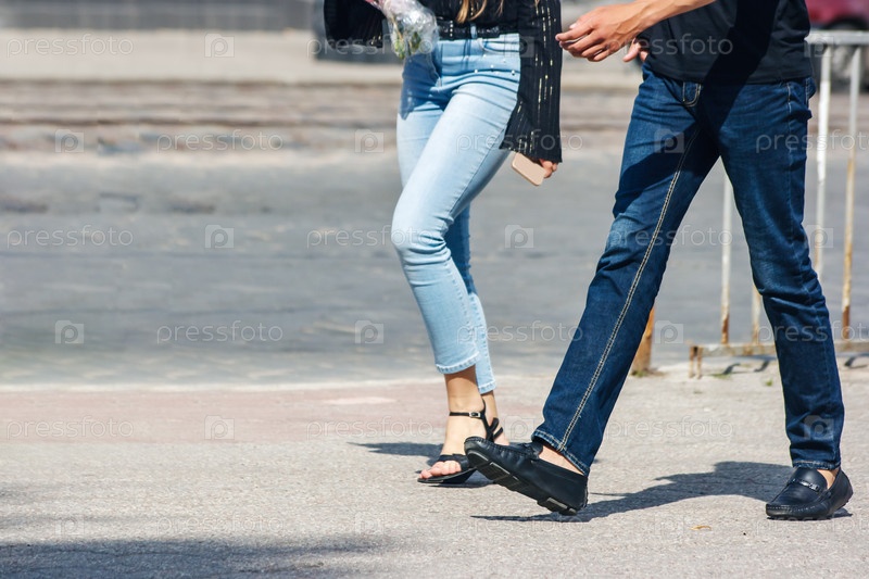 Молодая пара идет по улице