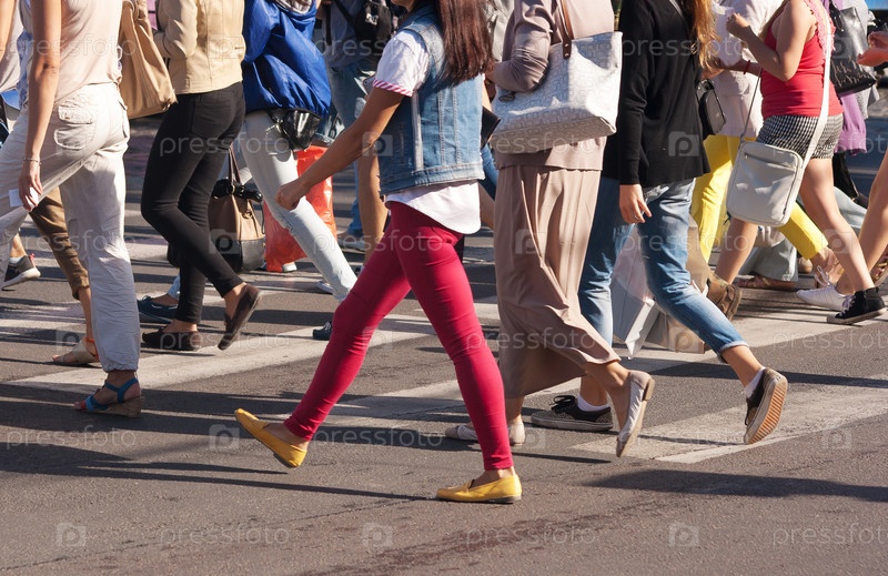 Ноги пешеходов, пересекающих улицу города
