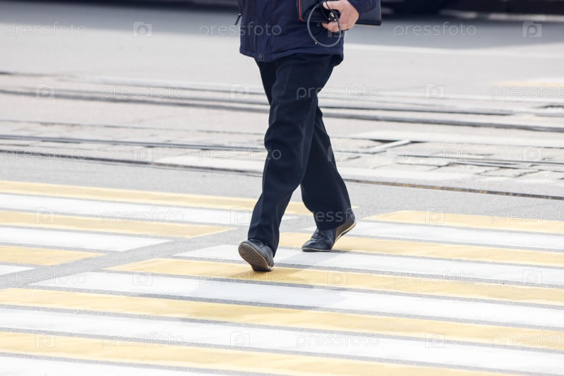 Пешеходы переходят улицу по пешеходному переходу в весенний день