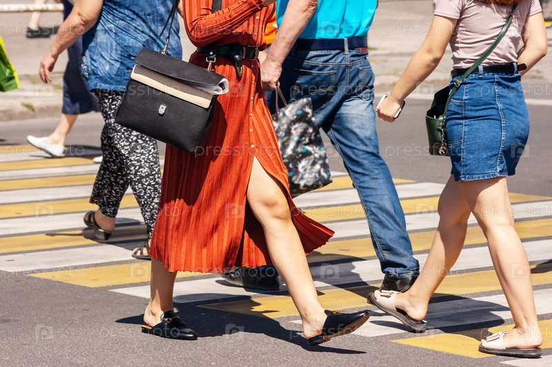 Люди переходят улицу по пешеходному переходу
