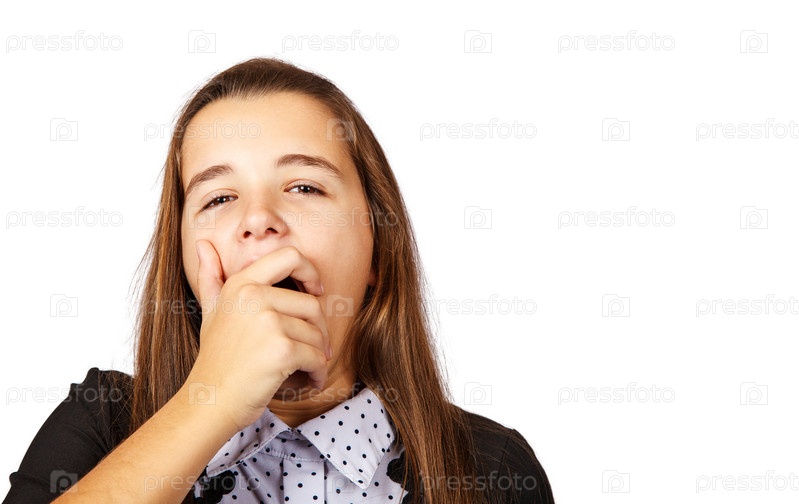 Девочка-подросток зевает, прикрывая рот рукой