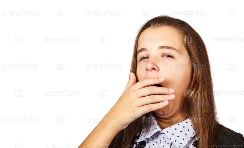 Девочка-подросток зевает, прикрывая рот рукой