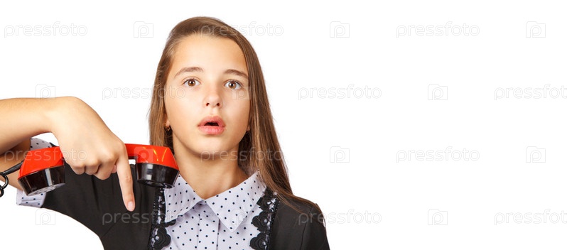 Девочка-подросток разговаривает по ретро-телефону